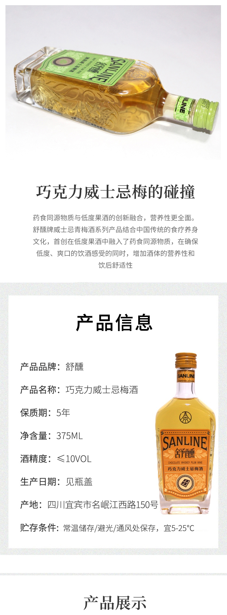 五粮液股份出品舒醺巧克力10度威士忌375ML