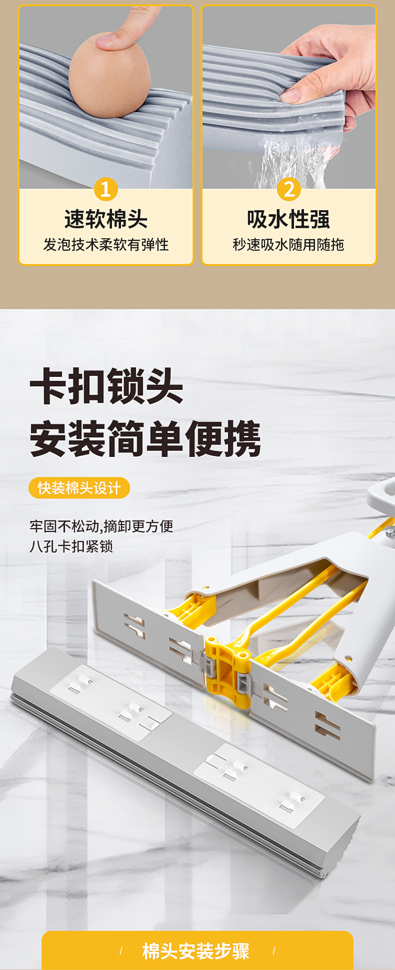 免手洗懒人海绵拖把