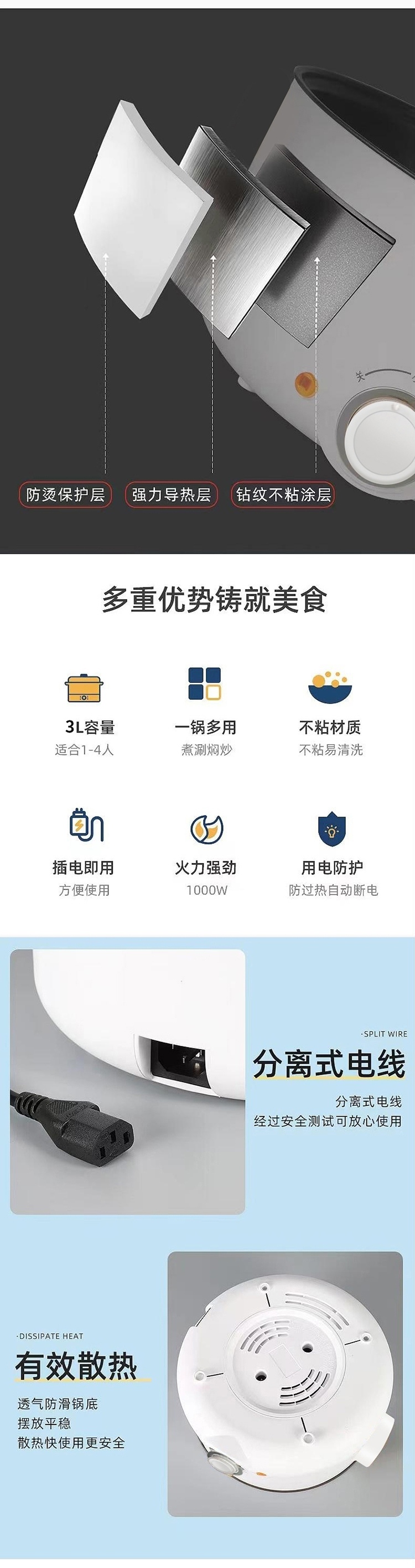 多用途电煮锅多功能小电锅夜宵煮面神器3L
