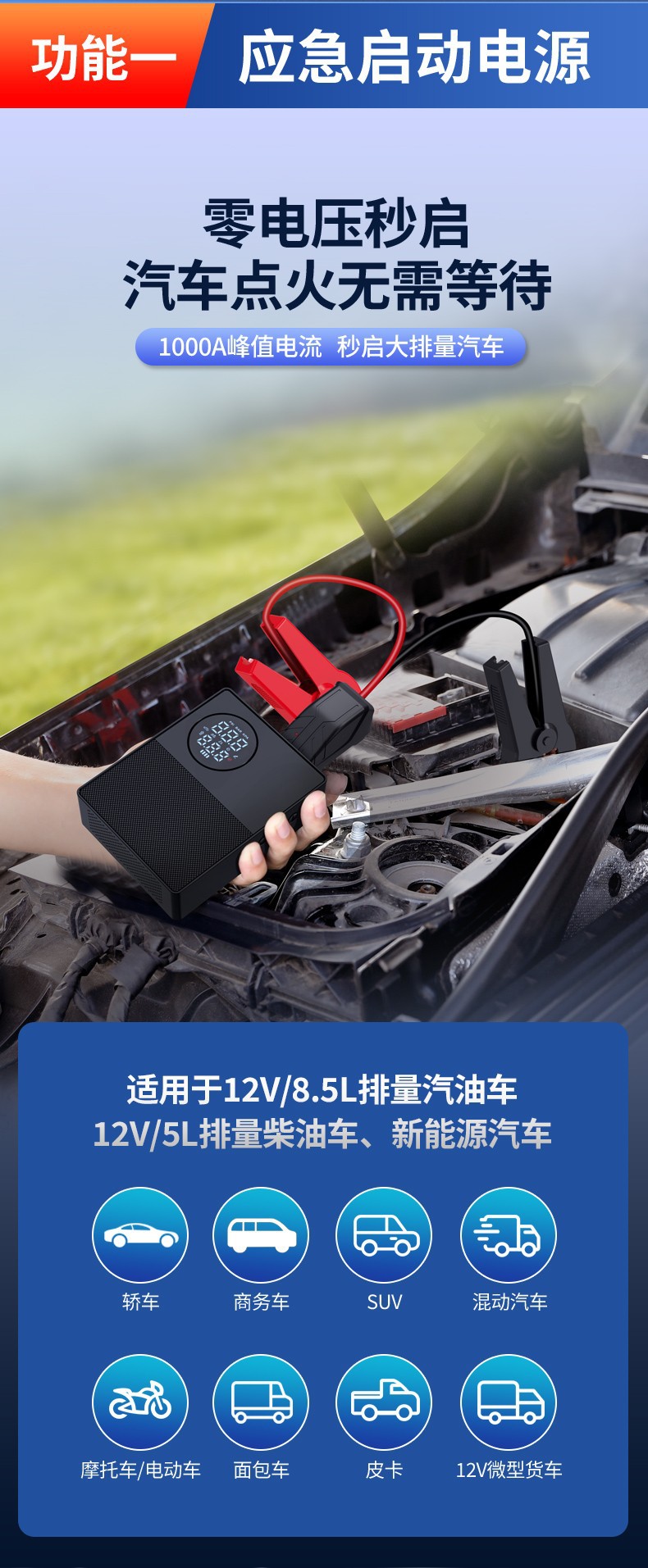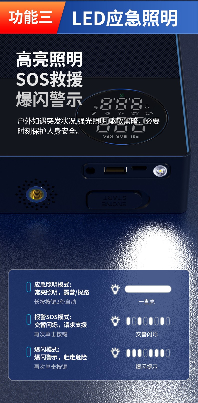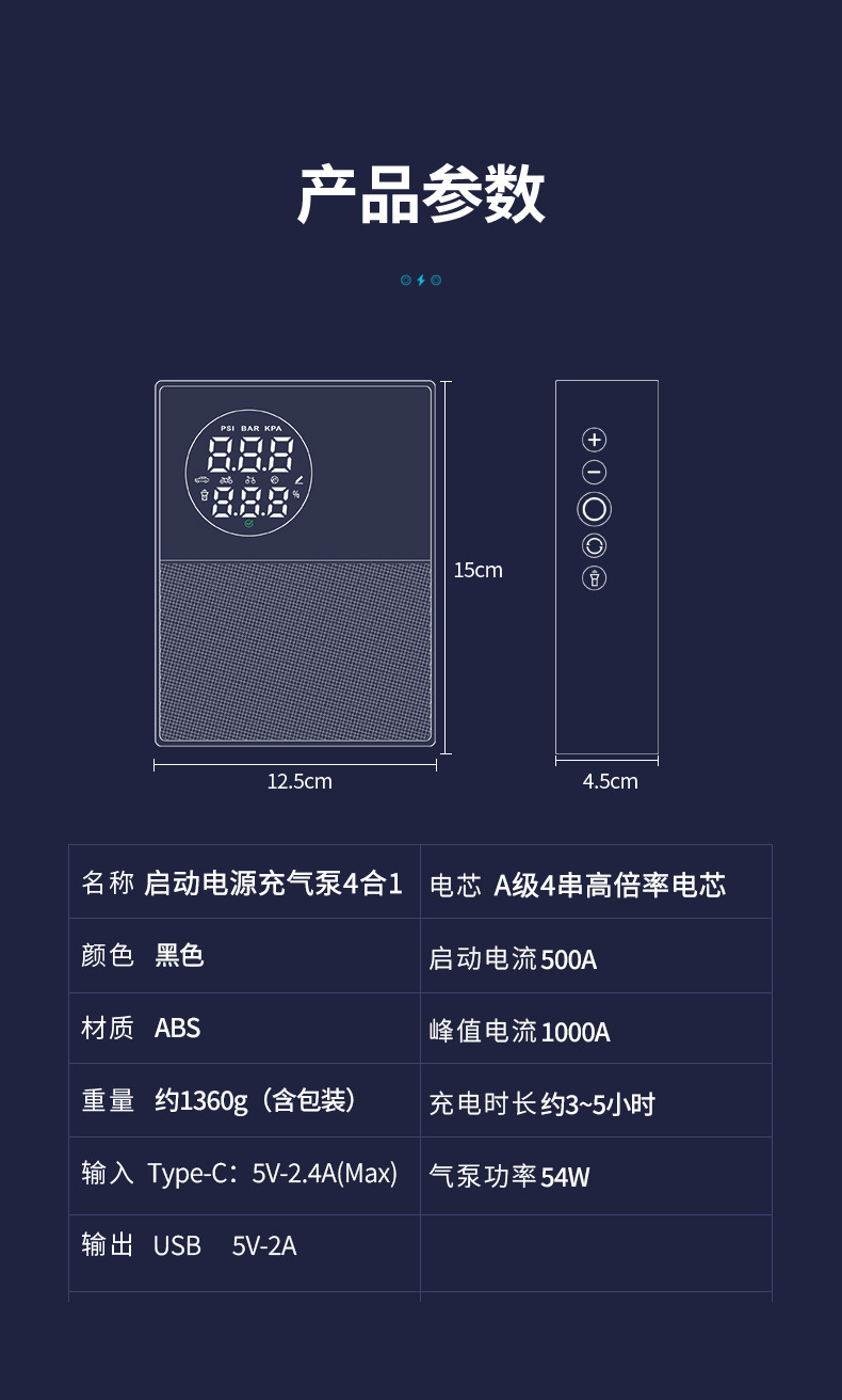 汽车应急启动电源充气泵一体机